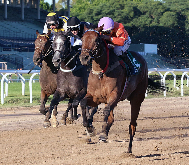 Nacido y criado en el Haras La Fortaleza (Serrano), el caballo Soñar Despierto ($ 4.70-D. Arias-R. Ramallo-Stud Hilda Juana) alcanzó a los 4 años y por medio cuerpo la tercera victoria de su campaña en la 3ª competencia de La Plata (18/12/25).