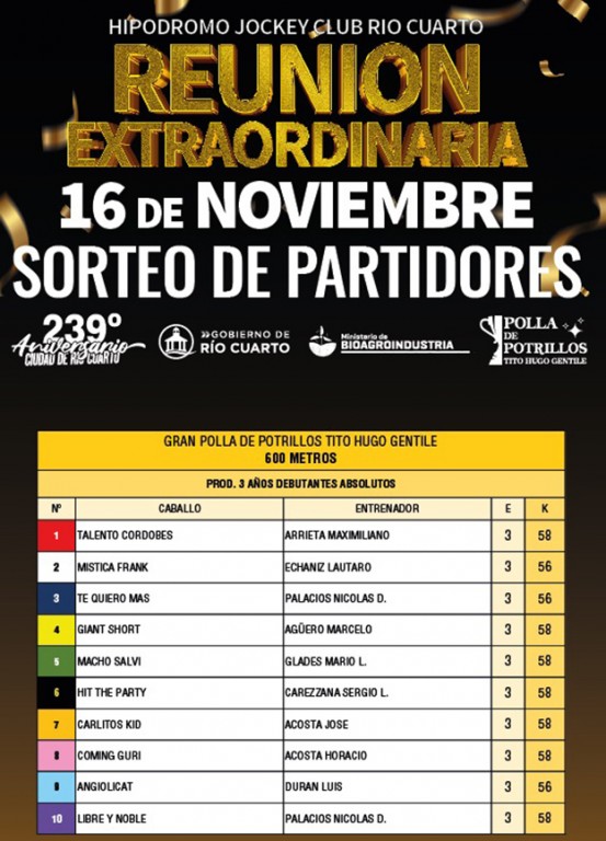 El Astro correrá 4 ejemplares este domingo 16 en Río Cuarto