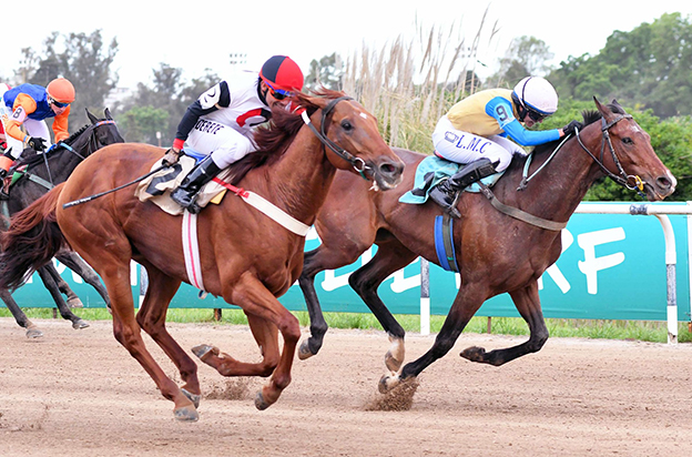 La potranca Se Te Escapa ($ 4.65-Azcona-Barbieri-Stud La Número 22) se impuso a los 3 años por tres cuarto de cuerpo en la 10ª competencia.