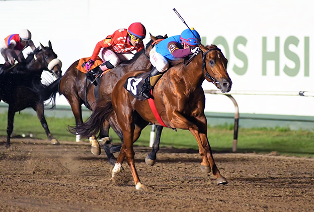 Tras varios arrimes interesantes en la categoría, la hija de Il Campione y Que Jugadora (Indygo Shiner) largó bien y se abrigó a los palos para hacer la gestión de una hebra.