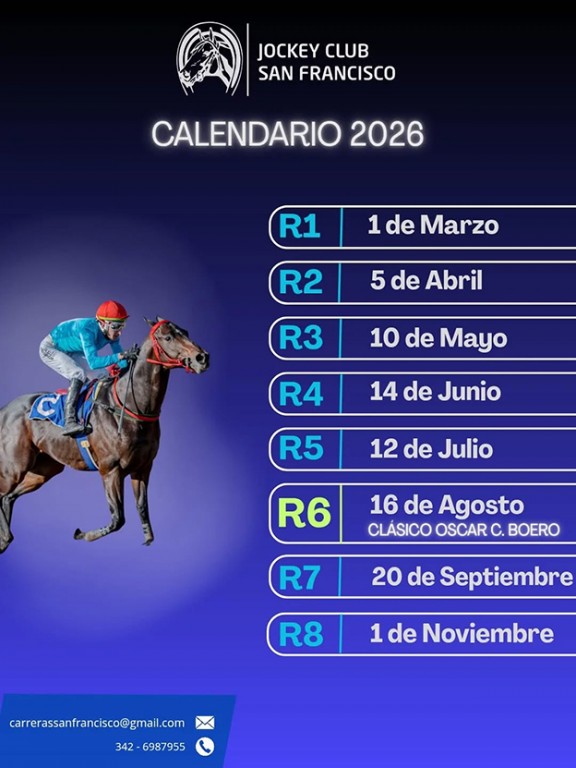 La comisión del hipódromo de San Francisco acaba de anunciar otra novedad, en este caso una atractiva propuesta para el año que viene pero con inscripciones hasta el sábado primero y ratificaciones una semana después, el 8 de noviembre ’25.