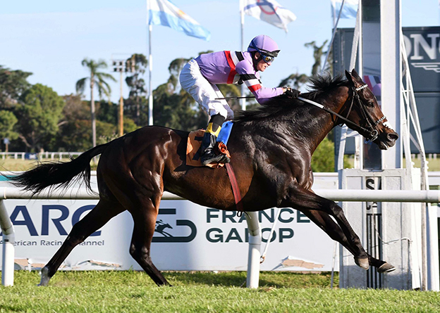 De 5 años, el hijo de Courtier y Spsurfi’n Usa (Crimson Tide) que fue el último ganador del Latino en su país, echó espectaculares 2’ 24” 14/100 en el césped normal.