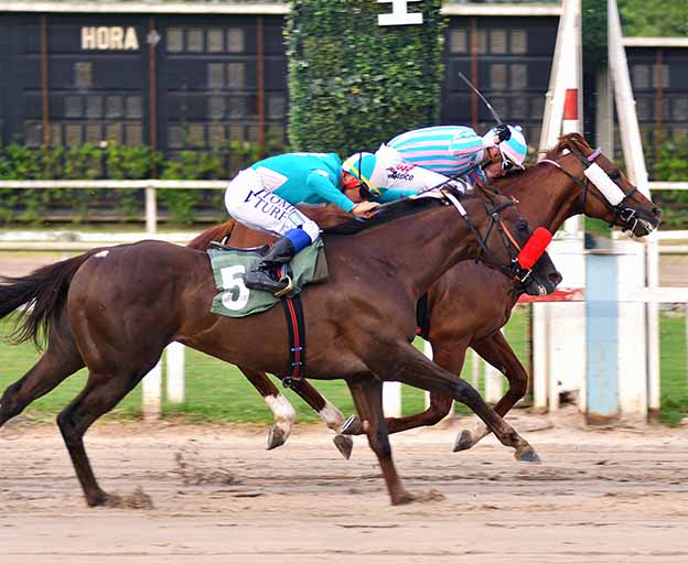 También cinco competencias (con la de hoy) lleva ganadas a los 7 años en treinta y cinco salidas Don Galeon ($ 5.10-Montoya-Guthmann-Stud Bar Royal, Córdoba-Criador: San Benito).