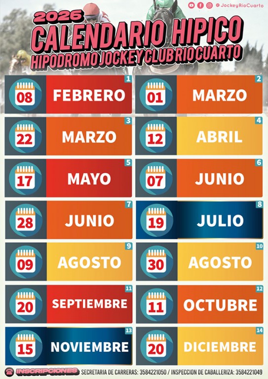 De cara a una nueva temporada, el hipódromo Río Cuarto hizo conocer el calendario para todo el año.