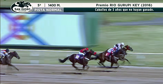 Arrancó tercera cerca en el desarrollo, pasó al segundo lugar al enfilar el derecho y sin lucha pasó a dominar en los 120 metros finales.