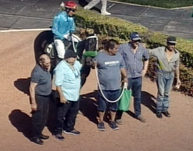 “Lo compramos de año y medio en el Haras La Fortaleza, lo vienen poniendo despacio y mejora en cada presentación…”, manifestó entre otros conceptos Eduardo Granja, uno de sus socios-propietarios y vocero del numeroso grupo que lo acompañó en la herradura de los vencedores.