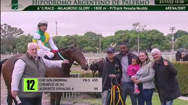 En su segunda presentación, por 4 cuerpos ganó Che Bahiana ($ 1.30-Goncalves-De Gregorio-Stud Chemeco-Proc: El Cufa, Río Cuarto) en la 6ª carrera de Palermo (04/07/23).