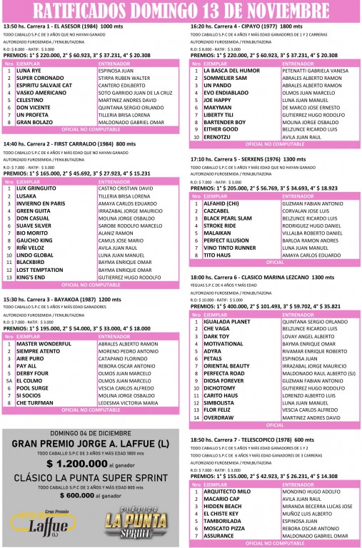 Muy numerosa resultó la pre-anotación por Carta para esta reunión extraordinaria de carreras. Forfait: lunes 10 y completarán las concertadas
