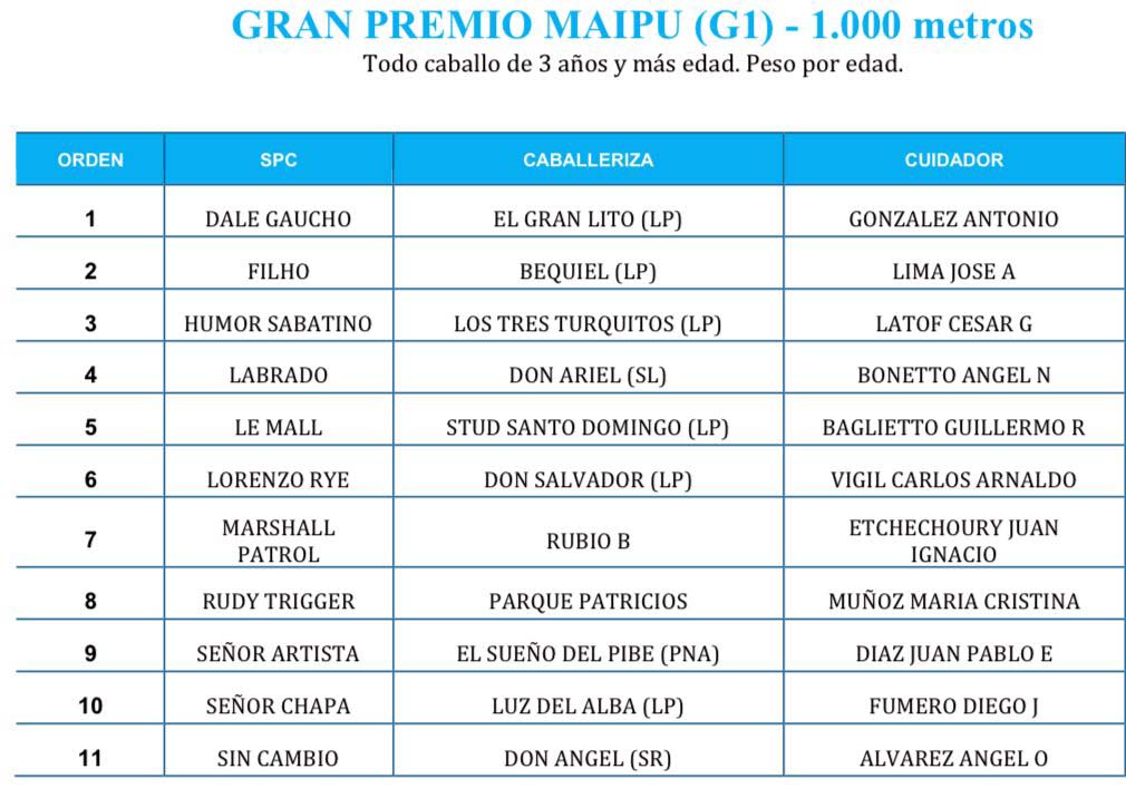 Hay una decena más de ejemplares al acecho como para brindar un gran espectáculo ya que es un cotejo armado a peso por impresión, tratando de emparejar chances de todos los competidores y -junto al resto del programa- a la medida de lo que viene dando el circo del Imperio.
