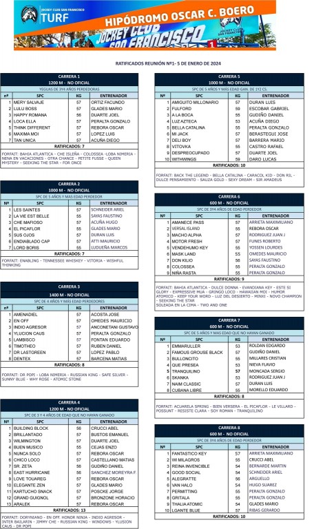 Si fallan los de arriba, están al acecho Filippo (Joaquín Gómez-A. Dotzel), Remoulina (Romagnoli-Congestre), Lizannel (M. Quinteros), El Mero Jefe (G. Quinteros, ambos de Carezzana) y Winslet (Muratori-Palacios).