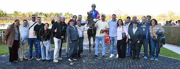 Con su jinete vistiendo la chaquetilla de su Criador y Propietario, el Stud Haras Masama (Miguel Riglos), la quinta medalla -dos de ellas fuera del nivel común- consiguió este domingo Tex For Sale ($ 1.55-Monasterolo-Periga) en la 12ª carrera de Palermo (19/10/25).