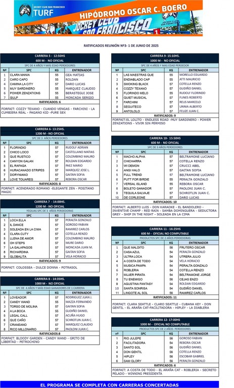 Es en las competencias por Carta. Varias carreras siguen reabiertas. El forfait es este lunes 24