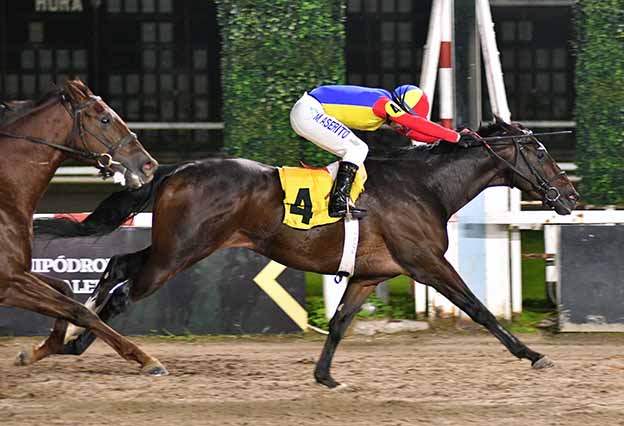 De 6 años y descendiente de Vastago Salvaje y Che Bacana (Storm Surge), ganó por un cuerpo y cruzó la sentencia en 1’ 25” 49/100 para los 1400.