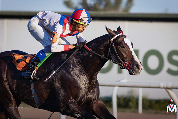 En el Clásico de 1100 montará a la yegua Candy Gloriosa (Vastago Salvaje), ganadora de 5 oficiales, propiedad de un turfman riocuartense y entrenada en Buenos Aires por Oscar Conti.