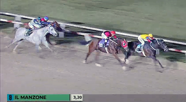 Nacido y criado en el Haras La Fortaleza de Marcela Andrenacci (Serrano), Il Manzone ($ 3.20-Leyes-Degregorio-Stud El Tole, San Luis) se impuso a los 4 años por un cuerpo en la 16ª competencia.
